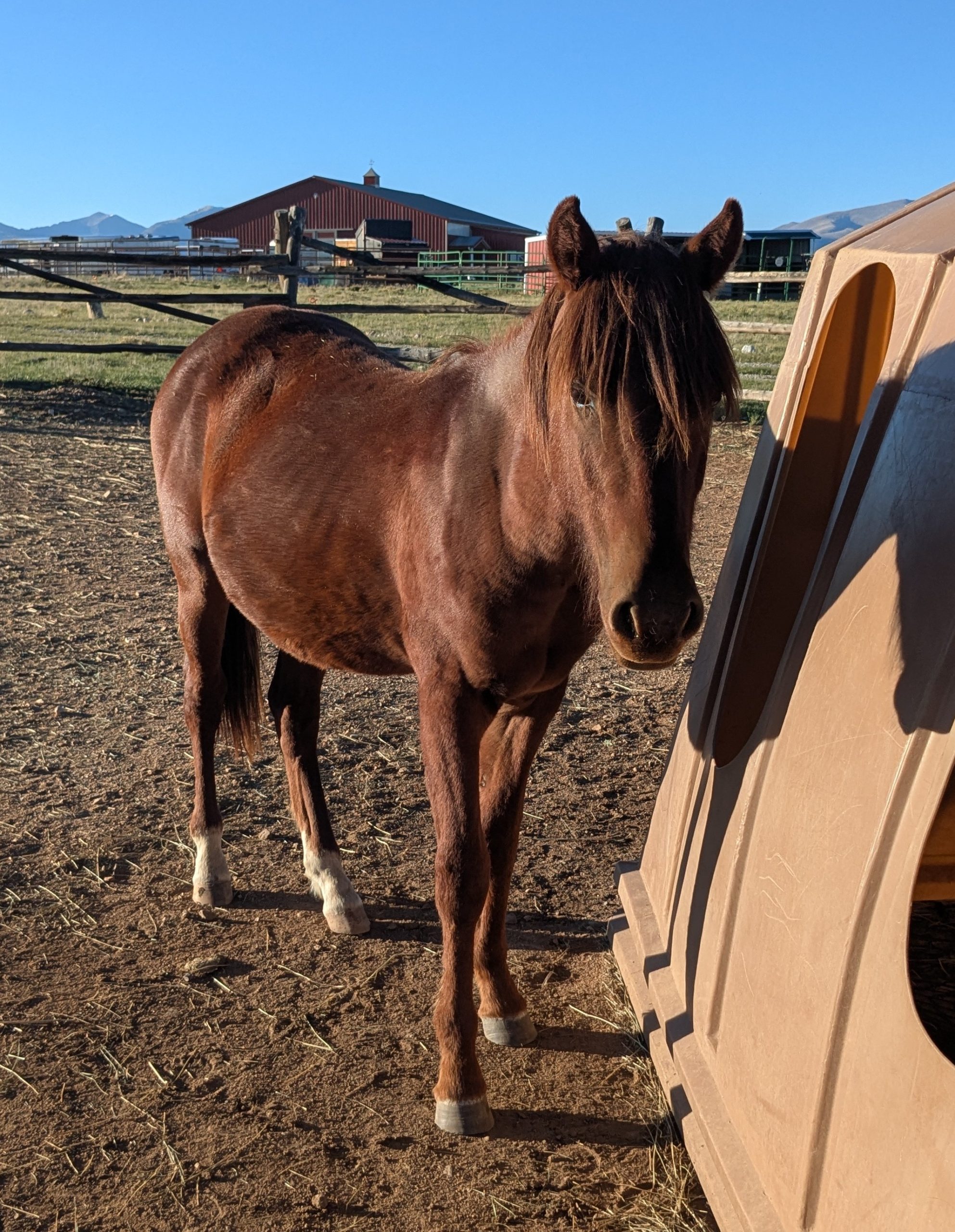 We snatched Fig up from the Canon City holding facility this past summer. He is such a sweet young man with a great personality. Fig has been given these past few months time to settle and be a part of a herd. He’s beginning to trust humans and accepts light touching. We haven’t done much more at this point so trainer skills are required for this little nugget or a willingness to hire one as he embarks on his next chapter.