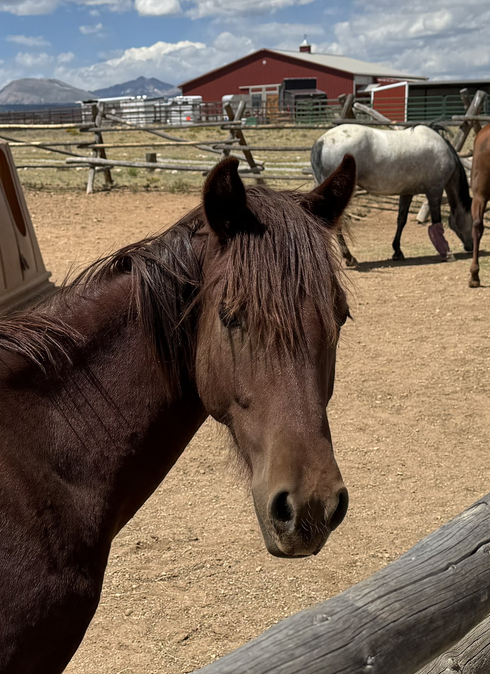 This stunning OTTB was surrendered to the Rescue at the end of 2022 after sustaining a severe hoof injury his owner could not care for. Known as Tally Stick in his racing career, you can look him up for some of his 1st place winnings. After racing in England, Canada and then landing here in Colorado, he was retired by his last owner until unfortunately that owner passed away and Rainier and his companions ended up at an auction. Shortly after being with us, we realized how seriously damaged his hoof was as 1⁄3 of it literally fell apart. It has been a long road to recovery for Rainier as we have done everything we possibly can to help him on his healing journey. He enjoys being patiently brushed and is always eager for human attention and interaction. Rainier is ready for an experienced person that wants to go on walks and can care for him throughout his next chapter in life.